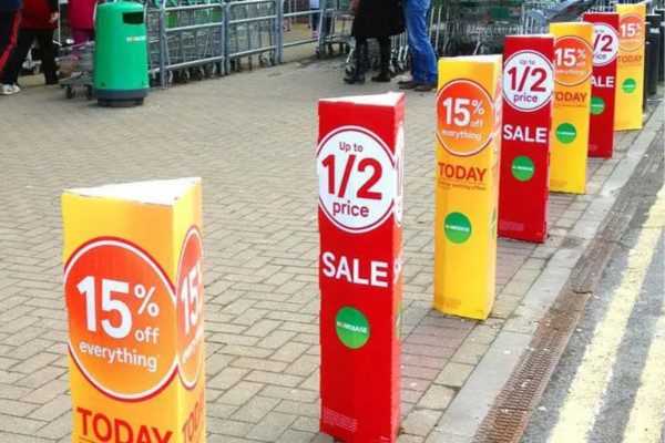 Custom printed bollard covers can be slipped over a bollard to provide businesses with a unique opportunity to market themselves.